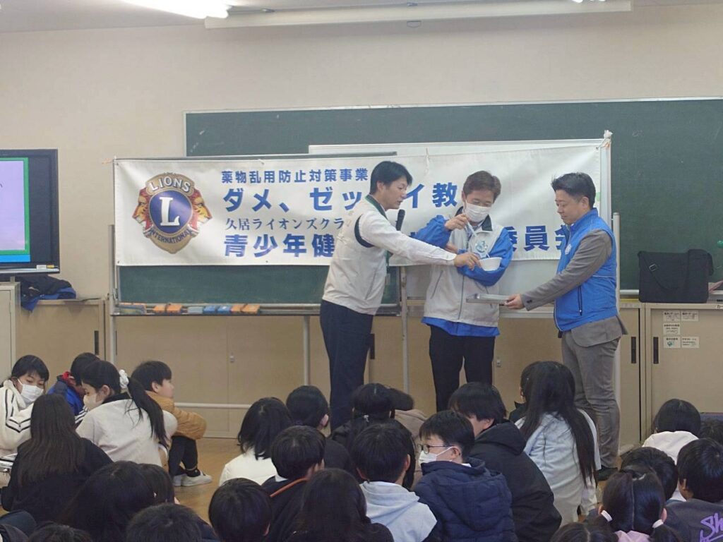 薬物乱用防止教室「ダメ、ゼッタイ」教室 @ 立成小学校 2026 3/18 事業報告 第49代菅尾会長(2025〜2026年度) 日時:2026年1月14日(水) 10:50〜11:35場所:津市立立成小学校 津市立立成小学校にて薬物乱用防止教室「ダメ、ゼッタイ」教室を開催しました。 子どもたちに薬物の危険性を学んでもらう機会。子どもたちの真剣なまなざしが印象的でした。 講師のメンバーの講義にも力が入ります 最後は気合いをいれて 事業報告 第49代菅尾会長(2025〜2026年度) 1月第1例会(第1155回例会) 1月第2例会(第1156回例会)
